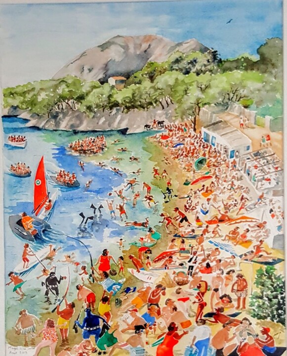 Dans les œuvres de cette artiste de talent se détache un dessin détaillé aux traits caricaturaux, dont l’impact chromatique est créé par son utilisation presque exclusive du feutre.