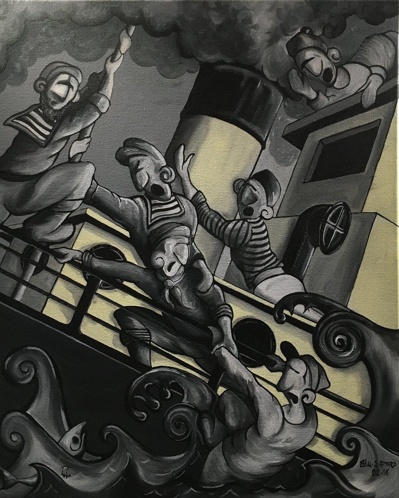 Né à Rochefort-sur-Mer en 1966, armé de ses carnets de dessin et d’un sac à dos, il entreprend des voyages dès les années 80 et s’enrichit de multiples expériences. Attiré depuis longtemps par la pratique des arts. C’est de retour à La Rochelle, après un séjour d’une dizaine d’années outre-Atlantique où il a exposé et vendu ses premières toiles, qu’il entreprend de détourner l’iconographie liée aux marins pêcheurs.